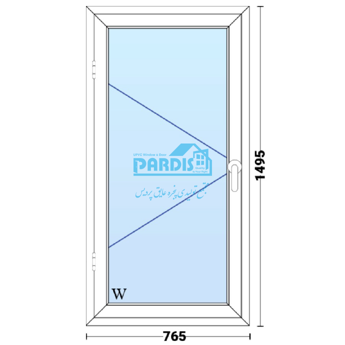 پنجره UPVC تک حالته ۱۵۲۰×۷۶۵ لولای متقابل